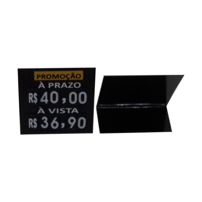 Etiqueta Magnética Grande com Base Etiqueta para exposição de preços com placas magnéticas moduláveis e práticas para sua vitrine. Não precisa escrever, bastar montar o valor e a oferta de seu produto. Conheça os quatro modelos grandes e pequenos, com alfinetes e com bases para prateleiras ou vitrines. Cada kit contém: 12 displays grandes; 220 números; 40 vírgulas; 12 'Promo.'; 12 'À Vista'; 12 'À Prazo'; 10 '%'; 20 'R$'; 12 'DE'; 12 'POR'; 16 'X'; 10 '+'. Itens da embalagem: 1 - Etiqueta Magnética Grande com Base *Imagens meramente ilustrativas