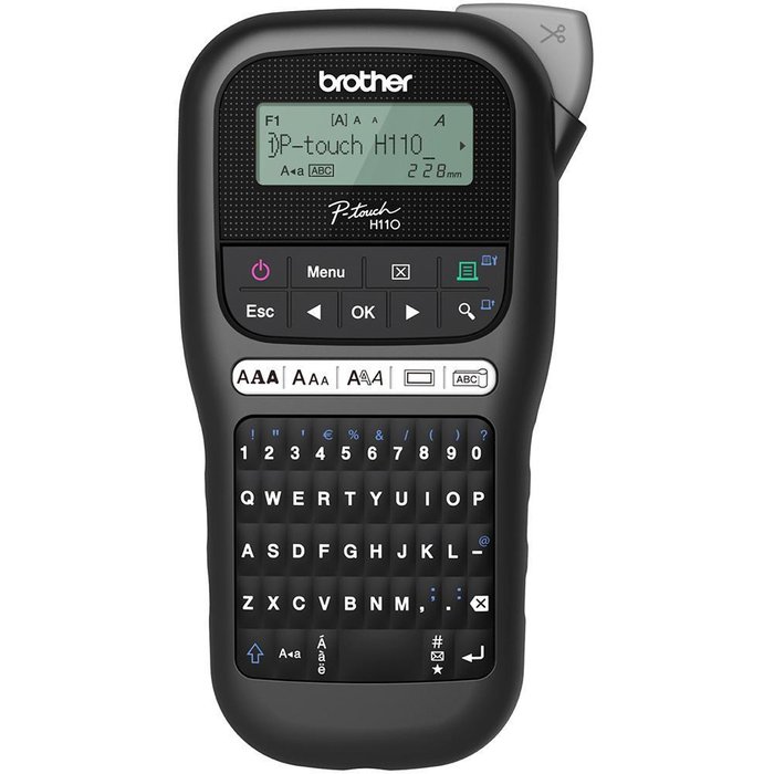 Rotulador Eletrônico Portátil Brother PT-H110BK é o substituto do modelo PT-H105, com funções avançadas e de fácil uso. Seu teclado QWERTY é emborrachado e teclas de um toque para acessar fontes, estilos e molduras. Seu display gráfico suporta 15 caracteres x 1 linha e pré-visualização antes de realizar a impressão. A capacidade de memória do Rotulador PTH110 é de até 15 etiquetas, utiliza fitas laminadas e resistentes modelo TZ de 6 até 12mm de largura, cortador manual e 253 símbolos embutidos. Rotulador Brother PT H110 é ideal para uso doméstico, escritório, comércios, indústrias e Telecom (função bandeirola).