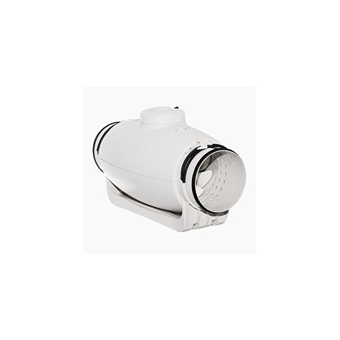 O Exaustor p/Banheiro Helicocentrifugo Inline Mod: TD350/125 Silent S&P é fabricado em material plástico ABS (forrado em aço galvanizado, protegido com pintura epoxi do modelo 1000 em diante) com caixa de borners externa, corpo desmontável e motor regulável de 2 velocidades.