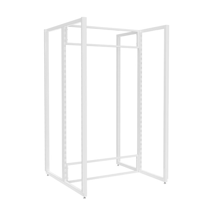 Por ser um Expositor Central Para Cremalheira, ele possui 8 trilhos para cremalheiras em seus 4 lados, permitindo o encaixe e ajuste de diversos acessórios para cremalheiras da maneira que você preferir. Essa é a versatilidade que sua loja merece!