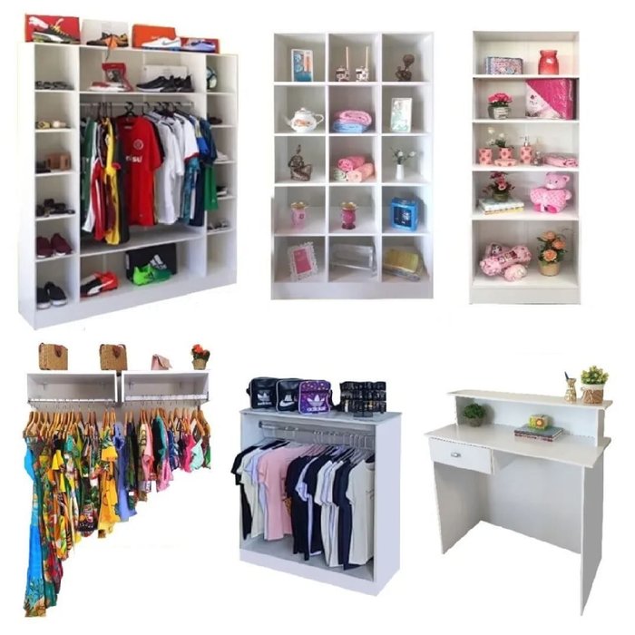 Expositor Colméia Armário Arara Balcão Caixa Loja Roupa 7 Pç BRANCO