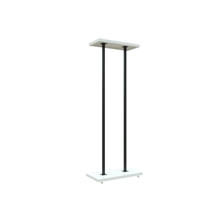 Um expositor central para loja é a solução para quem precisa de estrutura para organizar produtos sem precisar furar a parede. Esse modelo com 2 colunas é compatível com os acessórios da linha screw, como suportes para bonés, bolas ou calçados.