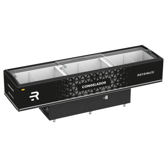 Expositor Ilha Vanguard Top Congelados Resfriados 800l Vidro Semicurvo 3,00m Refrimate 127v Preto