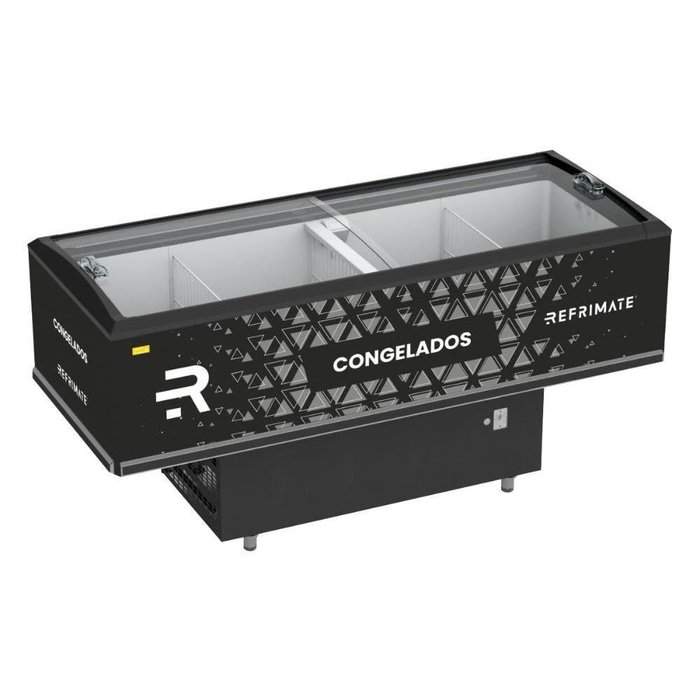 Expositor Ilha, Vanguard Top, Congelados, Resfriados, Vidro Semicurvo, 2,00m, EIVT 2000, Refrimate, 127V, Equipamento de Refrigeração, Expositor de Alimentos, Expositor para Supermercado, Expositor para Congelados, Expositor para Resfriados, Refrimate EIVT 2000Tensão Elétrica: 127V | Cor: Preto | Produto: Freezer | Capacidade: 520 Voltagem: 127V
