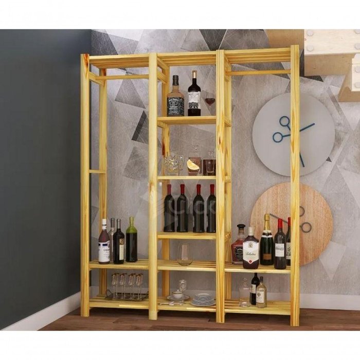 Estante arara com prateleiras e estrutura em madeira maciça de Pinus