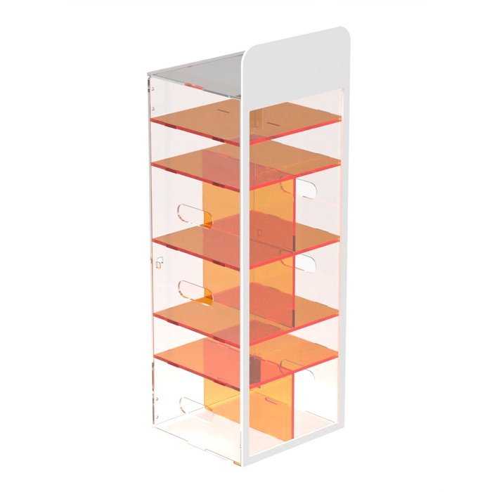 Fabricado em acrílico cristal premium, um material conhecido pela sua durabilidade e transparência impecável, este expositor valoriza os acessórios em exibição. Sua prateleira e testeira coloridas adicionam um visual vibrante, permitindo que você imprima sua identidade visual com profissionalismo.