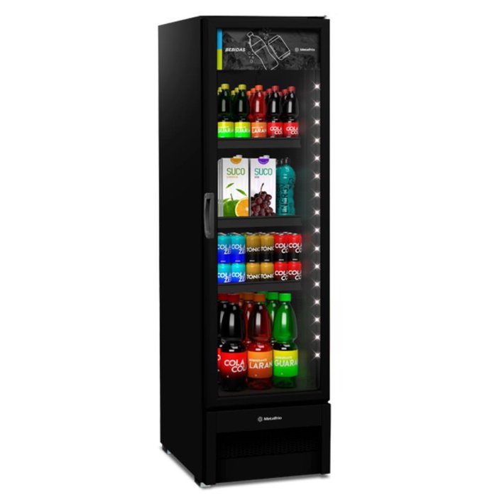 O refrigerador/expositor vertical Slim VB28 All Black foi desenvolvido especialmente para manter as bebidas com o destaque certo no seu ponto de venda. O seu design inteiramente preto combinado porta de vidro antiembaçante de baixa emissividade e LED perimetral permitem melhor visualização interna e maior desejo de compra. Ideal para água, refrigerantes e sucos têm capacidade de 276 litros, podendo comportar até 288 latas de 350ml ou 144 garrafas de 600ml divididos em 3 prateleiras reguláveis Fabricado para desempenho profissional, possui refrigeração por ar forçado e evaporador No-Frost (Não forma gelo!) que fornece um fluxo contínuo de ar, com uma tecnologia de rápida recuperação de temperatura interna, essencial na utilização comercial que exige abertura frequente. A regulagem de temperatura pode ser feita pelo termostato com regulagem de fábrica em 7 temperaturas sendo: Posição 0 - desligado Posição 7 - mais frio A Metalfrio fornece 1 ano de garantia para a tranquilidade de consumidor.