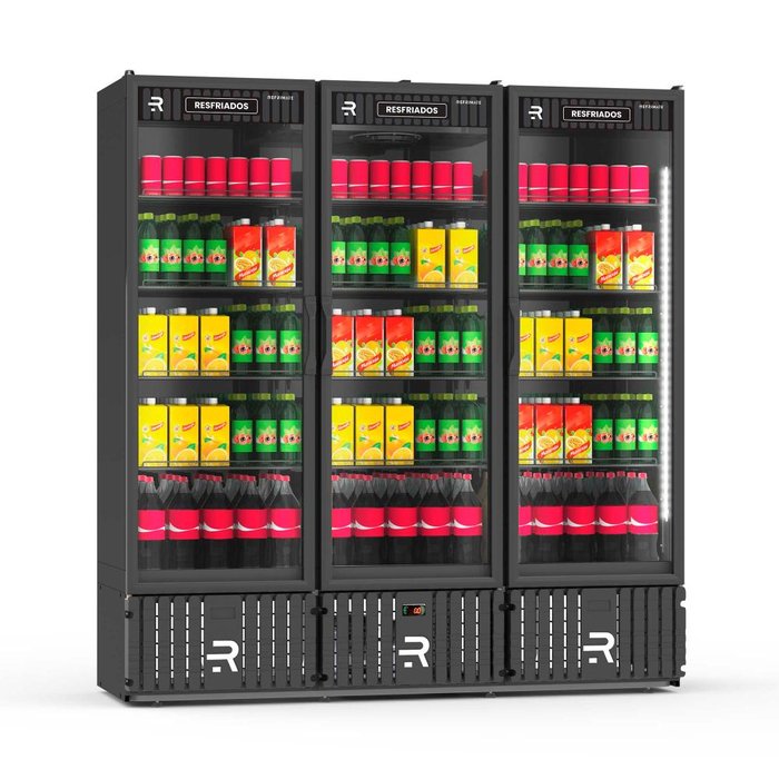 Expositor Vertical Resfriados Refrimate 1800 Litros 3 Portas Preto 220V VCM1800BO Expositor Vertical Resfriados Refrimate 1800 Litros 3 Portas Preto 220V VCM1800B é um equipamento essencial para estabelecimentos que desejam manter seus produtos frescos e atraentes. Com capacidade para 1800 litros, este expositor é ideal para supermercados, mercearias, padarias e restaurantes que oferecem frutas, verduras, frios e laticínios. Este expositor mantém seus produtos na temperatura ideal de 0ºC a 7ºC, graças ao seu controlador digital de temperatura e refrigeração por ar forçado. A iluminação em LED 6500K realça a aparência dos produtos, incentivando os clientes a comprar.