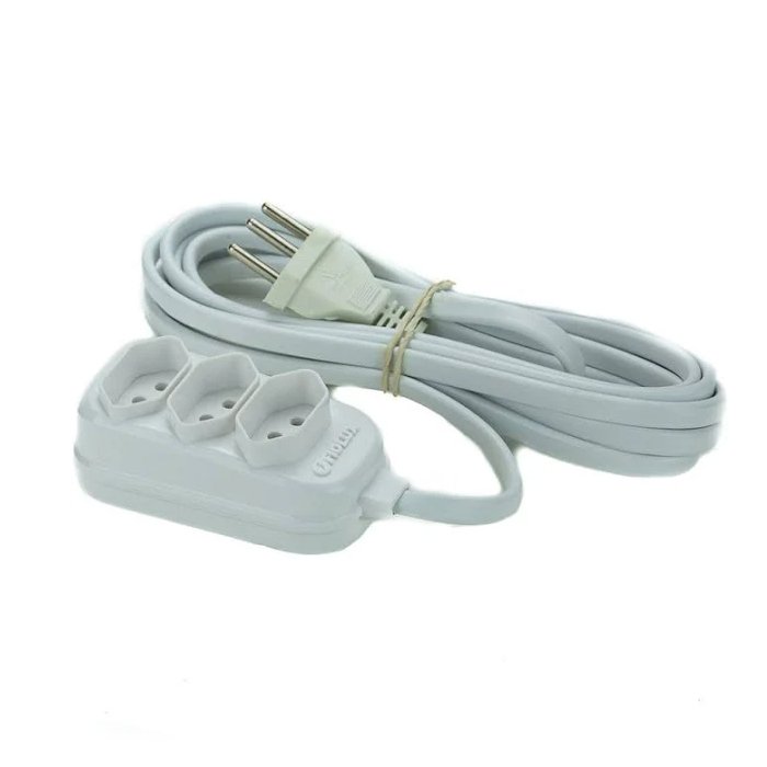 Extensão 3m Nbr 2p+t 3 Tomadas Branca Branca