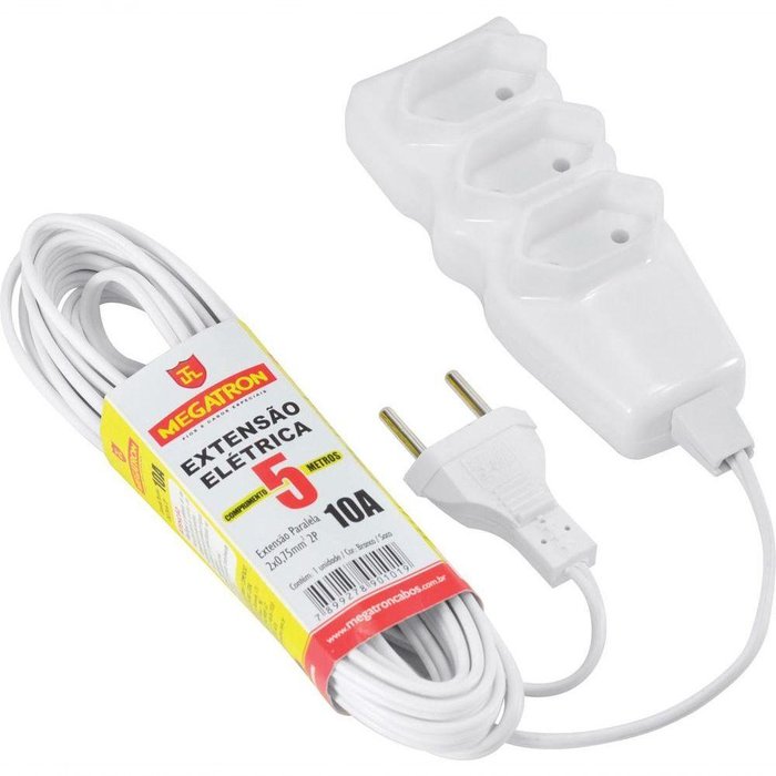 Extensão Cabo Pl 2x0,75 5 Metros Branca 101 Branca