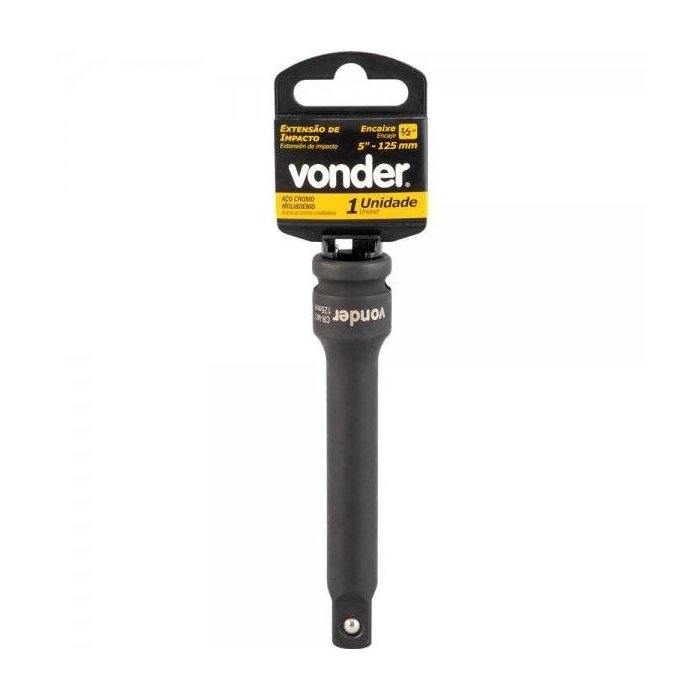 Marca: VonderConteúdo da embalagem:1 Extensão de impacto.Destaques e diferenciais:Produzida em aço cromo molibdênio, proporcionando maior resistência e durabilidade. Possui acabamento fosfatizado, que confere maior proteção contra oxidação/corrosão.Aplicações e dicas de uso:Indicada para prolongar o alcance dos soquetes de impacto, facilitando o aperto e desaperto de parafusos e porcas em locais de difícil acesso.Detalhes TécnicosMaterial da extensão: Aço cromo molibdênio Acabamento: Fosfatizado Medida do encaixe quadrado: 1/2" Comprimento total: 5" - 125 mm Massa aproximada (peso) (kg): 0.214 kg Garantia - E (CDC):Garantia legal: 90 dias