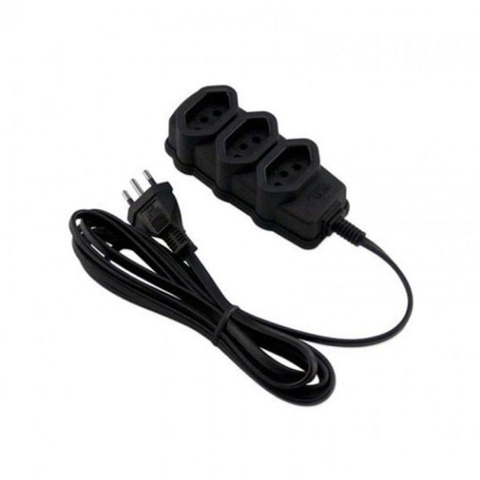 Extensão de Tomadas - 3 Saídas - Tripolar - 5 Metros - Force Line - Preto