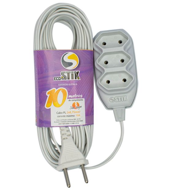 Extensão Elétrica 10 Metros Cabo 2x0,75 2p Certificada