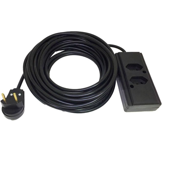 • Todas nossa extensões são Fabricadas com com PP Normatizado e Certificado pelo INMETRO !Características e Vantagens:• Extensão flexível, fácil de enrolar, transportar e armazenar.• Uso profissional.• Dupla camada de isolamento.• Cabo PP 750V.• Este produto está equipado com um cabo PP plano com dupla isolação.• É recomendado para lugares onde há circulação de pessoas ou deslocamento de objetos oumóveis pesados, etc.• Seu aterramento oferece maior proteção ao usuário (desde que a instalação elétrica do localesteja aterrada conforme NBR 5410).• Permite a conexão de 1 a 3 equipamentos com plugues 2P+T (fase e neutro + terra)simultaneamente, ideal para ser utilizado em locais de trabalho pesado.• As Nossas Extensões permitem ligar Maquinas e Equipamentos com Plug Mais Grossos (20Amperes), ou seja servem para Qualquer Equipamento que possuem plugs Macho Redondo.Extensões perfeitas para Ligar:• Furadeira, Lixadeira, Lavadora de Alta Pressão (WAP) , Aspirador de Pó, Cortador de Grama,Aparadores, Carregadores de Bateria, Ar - Condicionado - Portátil, Secador de cabelos, Micro -Ondas entre outros Equipamentos. (Consultar cabo recomendado).Características técnicas:• Modelo: Padrão Novo Brasileiro• Comprimento do Cabo de Energia: 10 Metros• Cabo PP: 2x4,0mm² ( 2 Vias )• Tensão Elétrica: 127/220v ( Bivolt )• Potência máxima: 2.500w ( 127v ) / 4.400w ( 220v ) OBS: O Comprimento do fio poderá intervir na capacidade.• Tomada em Barra Femeá: 3 Polos 20a ( Se adapta perfeita mente plugs de 10a )• Plug Macho Prensa Cabo: 2 Polos 10a• Cor: Preta• Quantidade de Tomadas: 02 Tomada(s)• Extensão já montada pronta para uso.
