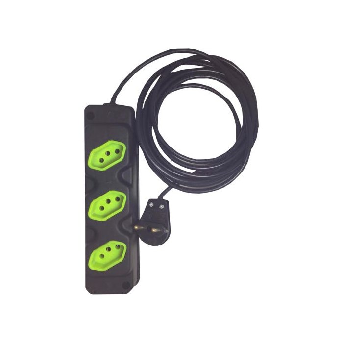 • Permite a conexão de 1 a 3 equipamentos com plugues 2P+T (fase e neutro + terra) simultaneamente, ideal para ser utilizado em locais de trabalho pesado.
