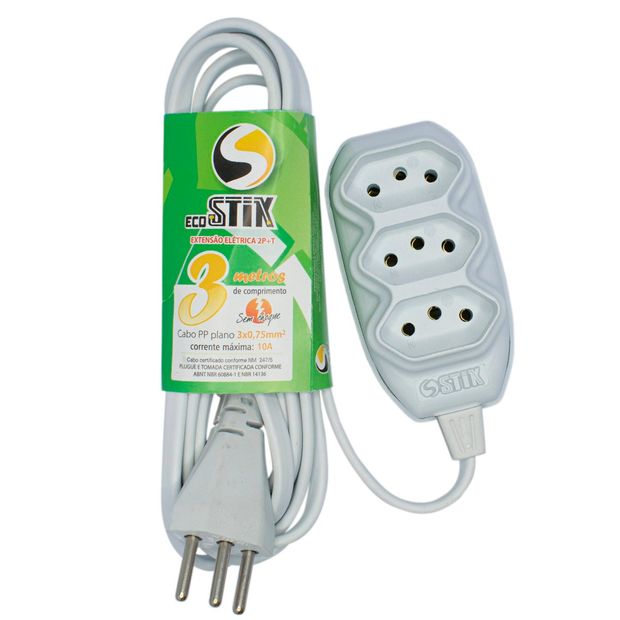 Extensão Elétrica 3 Metros Cabo 3x0,75 2p+t Certificada