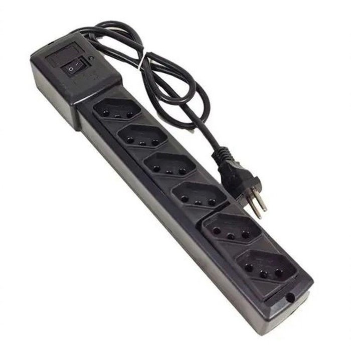 Extensão Elétrica 85cm 6 Tomadas Filtro de linha Bivolt com 6 tomadas com proteção contra sobrecargas, interruptor liga/desliga, LED indicador de funcionamento e sistema de fixação. Confeccionado em plástico ABS.
