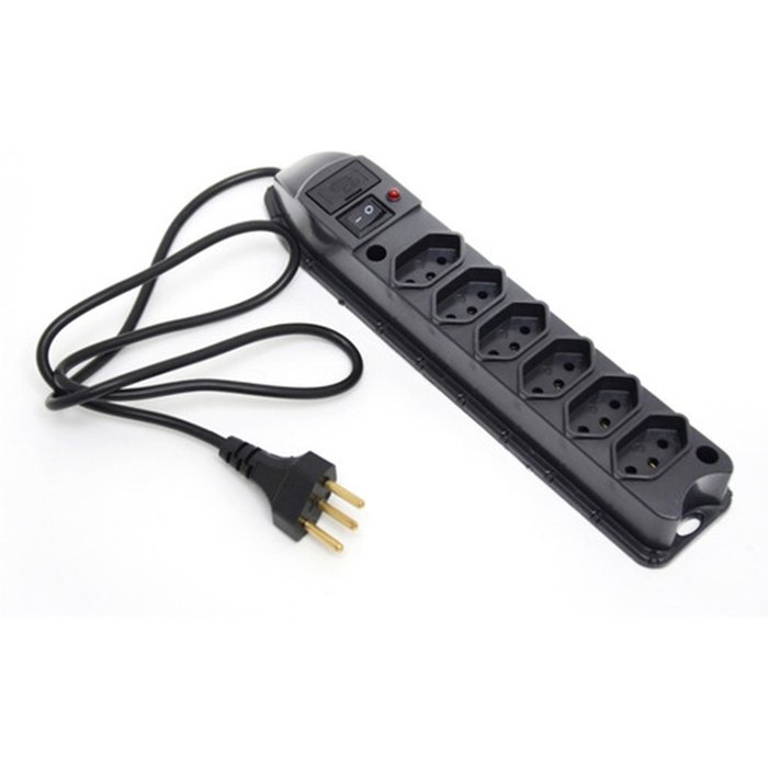 Extensão Elétrica Com 6 Tomadas Com Proteção Fusível Chave Led Preto