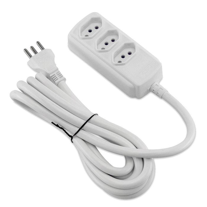 Extensão Elétrica Tripolar Forceline, Bivolt, 3m, 3 Tomadas, Branco - 0180200334
