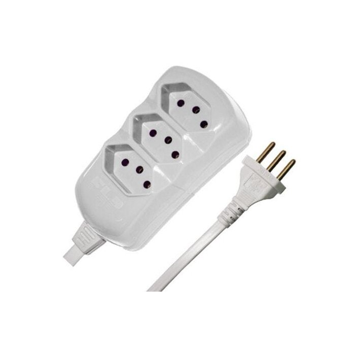 Extensão Régua 3 Tomadas 2P+T 10A 5 Metros Cabo Pp Branco