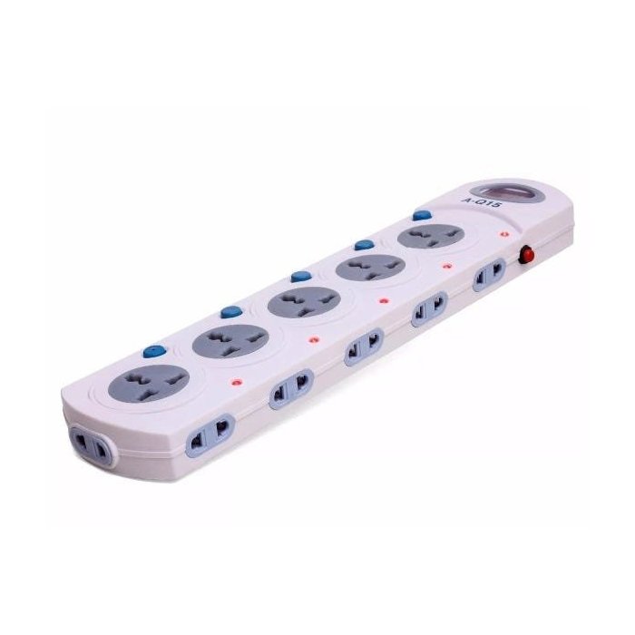 Este dispositivo conta com acionamento anti-chama, que impede a propagação de incêndio ou fogo entre as tomadas. Este dispositivo conta com botões liga/desliga em cada tomada e um botão de emergência na lateral. Permite a conexão de até 16 dispositivos em uma única tomada, este dispositivo não é um filtro de linha nem estabilizador. Trata-se de uma extensão de modelo industrial, de alta resistência com indicador de voltagem embutido e 16 tomadas.