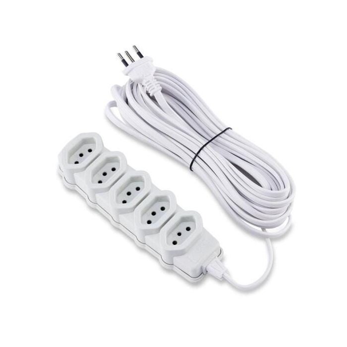 Extensão Tripolar Barra 10m Br 5 Tomadas Forceline Branco