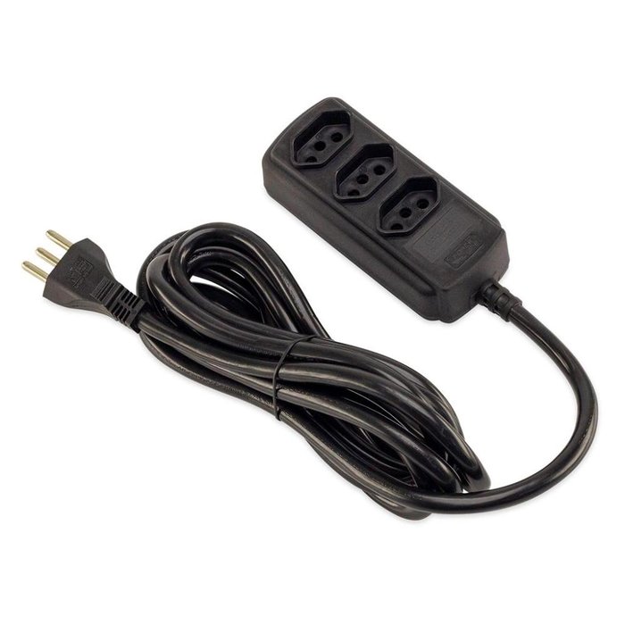 Extensão Tripolar Force Line 3 Tomadas 20a 3m Cabo Preto Preto