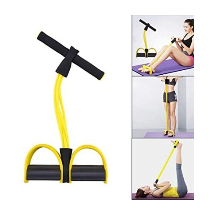 treine muitos músculos em apenas 1 equipamento! ombro, bíceps, tríceps, glúteos e muito mais com o elástico de tensão multifuncional com apoio para os pés.