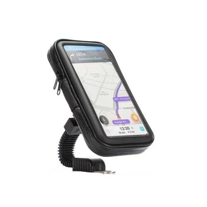 Extra Capa Suporte Prova D`água Celular 6,3 Pol Para Moto Bike Gps Suporte Capa para celular na moto e na bicicleta com super fixação e película especial sensível ao toque, serve em aparelhos de até 6.3 Polegadas, encaixe em Moto e Bicicletas . O suporte de guidão para smartphones é perfeito para ciclistas e motociclistas que precisam estar conectados aos seus smartphones. A partir de agora, usar aplicativos de geolocalização como Google Maps, Waze e ouvir música ficará muito mais fácil. Protege contra água, sendo possível utiliza-lo em chuvas sem danificar o produto, além de conter proteção contra poeira a, sol ou impactos. Características: - Modelo compatível com celulares de até 6,3 polegadas;- Protege contra água, sendo possível utiliza-lo em chuvas sem danificar o produto, além de conter proteção contra poeira a, sol ou impactos;- Pode ser utilizado em moto, perfeito para você encaixar o celular e poder visualizar o waze, google maps, entre outros;- Plástico transparente, sensível ao toque;- Abre e fecha com zíper, garantindo que o celular esteja bem preso;- Fácil instalação, encaixa no mesmo local do retrovisor Especificações Capa com Suporte: Material: Couro sintético e plásticoRotação em 360°Dimensões Internas (AxLxP): 18cm x 10cm x 3cmPeso aprox.: 100g Conteúdo da Embalagem: 1 Capa de celular1 Suporte