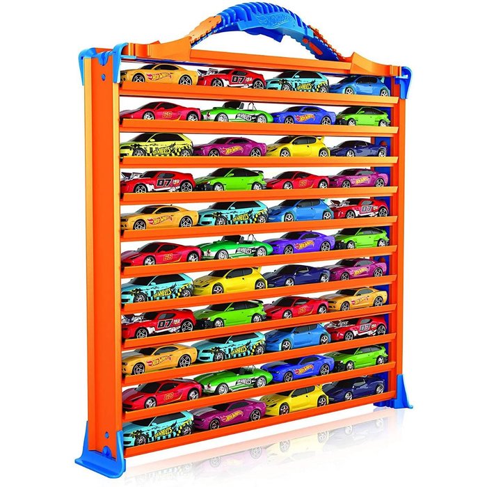 Este super porta carrinho Hot Wheels é um 3 em 1, pois você monta, organiza e joga. Tem capacidade para guardar até 44 dos seus brinquedos preferidos. Ele vira uma pista com looping ou duas rampas especiais. Ideal para colecionadores e amantes de Hot Wheels.