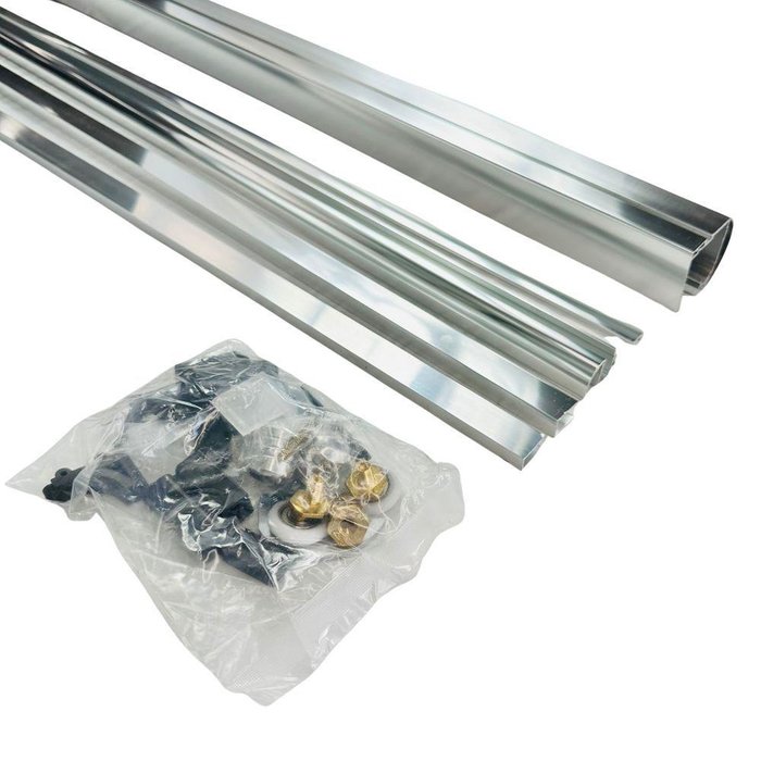 Kit box frontal de porta de correr com trilho superior, inferior e capa modelo tradicional ou redondo. Formato para instalação: F1 ou seja, 1 vidro fixo e 1 vidro móvel - Não acompanha os vidros.