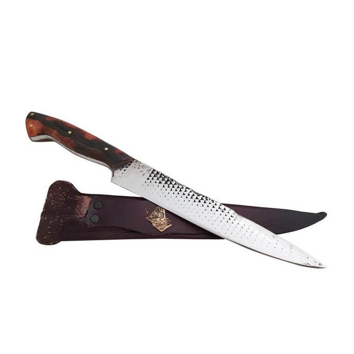 Faca totalmente artesanal sendo única e exclusiva. Ninguém terá uma igual a sua. Robusta e com a lâmina monobloco (full tang), que se estende inteiramente até o final do cabo, a faca possui excelente retenção de fio e ótimo corte. Feita a partir de antiga grosa de casquear cavalo desbastada artesanalmente a faca é uma raridade.