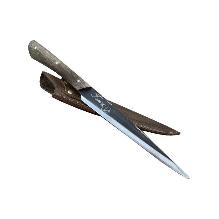 Faca estreita, e com ponta extremamente fina e afiada ideal para perfurações. Desenvolvidas para os amantes do churrasco, cozinha, preparo de carnes frescas, temperos, aves, petiscos, pode ser utilizada também em carnes quentes ao servir. Empunhadura anatômica e confortável feita com madeira de lei selecionada, proporcionado um corte preciso e seguro.