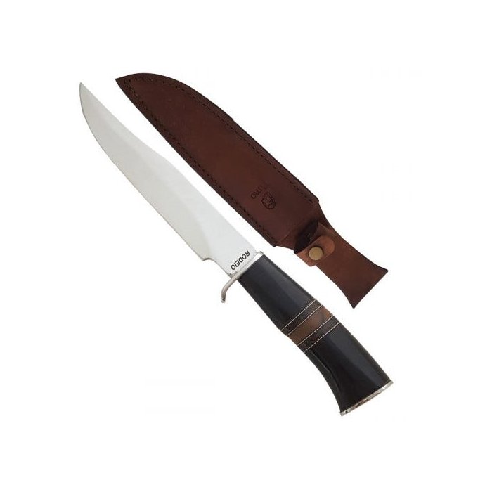 Produzida em tamanho único de 7,5 polegadas em aço inox 4mm de espessura e com guarda de proteção. Conta com um design diferenciado indicado para quem gosta de praticar a caça esportiva. Cabo produzido com material natural de acordo com a disponibilidade do estoque. Acompanha bainha em couro. Medidas aproximadas: CA - Lâmina: 19,0 cm. Cabo: 13,0 cm / Total: 32,0 cm