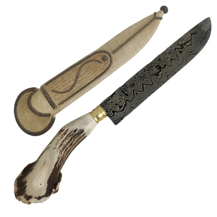 | Material | Couro, Aço Damasco, Chifre de Cervo |