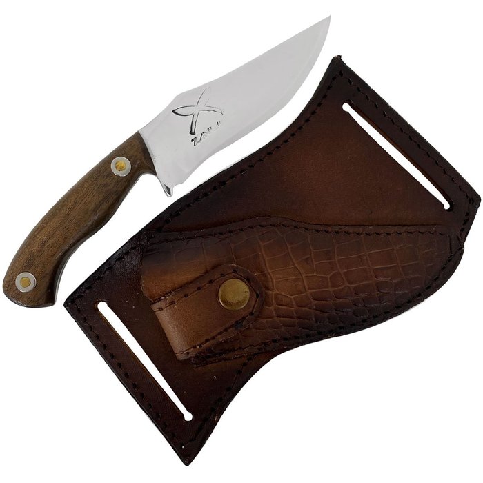 Fabricada artesanalmente e disponível no modelo Mini Knife essa faca coreadeira é tudo que você precisa para se sentir como um aventureiro raiz ou um grande chefe de cozinha que está preparado para qualquer desafio, seja em uso habitual do dia a dia como uma carne assada ou um churrasco até suas atividades outdoor como caça, pesca, camping, entre outras. Sua lâmina full tang confeccionada em aço inox 420C confere um altíssimo perfil de corte e excelente manutenção de fio. O cabo desenvolvido em madeira guajuvira, matéria prima natural conhecida por ter ótima resistência às intempéries, torna esta faca EDC única e exclusiva, podendo haver variações na tonalidade. Acompanha bainha em couro bovino com passante duplo para cinto, o que facilita o transporte com segurança.