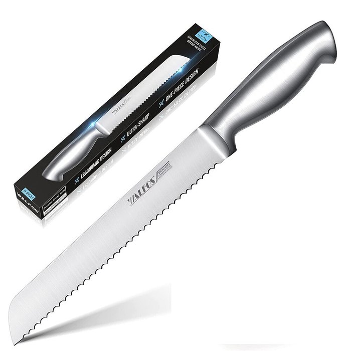 Walfos faca de fatia de pão serrilhada de aço inoxidável ultra-afiada alça de uma peça e 8-Polegada lâmina, ideal para cortar pão, bagels