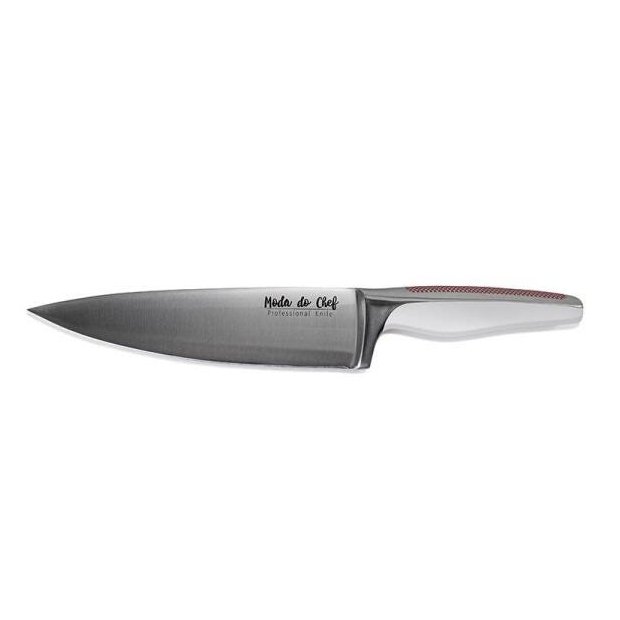 <p>A Faca Do Chef Exclusiva Moda do Chef é uma faca multitarefa, que oferece mais versatilidade e praticidade na hora de preparar os seus alimentos! Criada para ser a extensão de sua mão, ela serve para cortar, picar e filetar quase todos os tipos de ingredientes, pois conta com partes específicas para cada alimento. Com oito polegadas de comprimento, sua grande vantagem é a lâmina fina e longa, a qualidade do material e a tecnologia envolvida na produção. Além da Faca do Chef, a Moda do Chef conta com mais quatro modelos diferentes: faca para legumes, carne, frutas e pão!</p><p>Todas as Facas Exclusivas Moda do Chef contam com o poder de uma lâmina fina e afiada, de alto desempenho. Forjadas com liga de aço inoxidável alemão, a partir de uma peça única, elas também oferecem maior estabilidade proporcionada pela geometria do cabo, lâminas temperadas e afiadas e projeção que segue os mais rigorosos padrões de qualidade. Com estilo atemporal e elegância em cada detalhe, são feitas para quem adora cozinhar ou colecionar utensílios de cozinha que oferecem um design único, personalizado e inovador, além de possuírem cabo injetado para maior segurança e transformarem o seu momento de cozinhar em uma agradável experiência!</p><p>Vantagens</p><p>Perfeitas de ponta a ponta, as Facas Exclusivas Moda do Chef são produtos essenciais, que juntas contam com a eficiência de cortar com exatidão todos os tipos de alimentos com mais maciez, delicadeza e firmeza! Acompanham estojo presenteável e são facas que duram a vida toda!</p><p>Ref.: MC14128