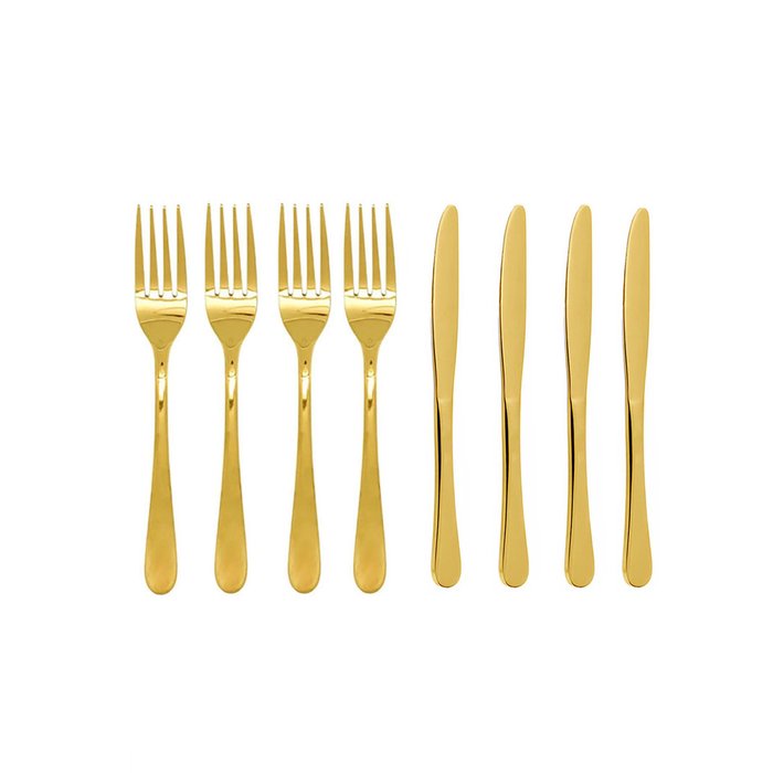 Faca e Garfo Sobremesa Inox Dourado Ouro Talher Aço Inox 8un dourado