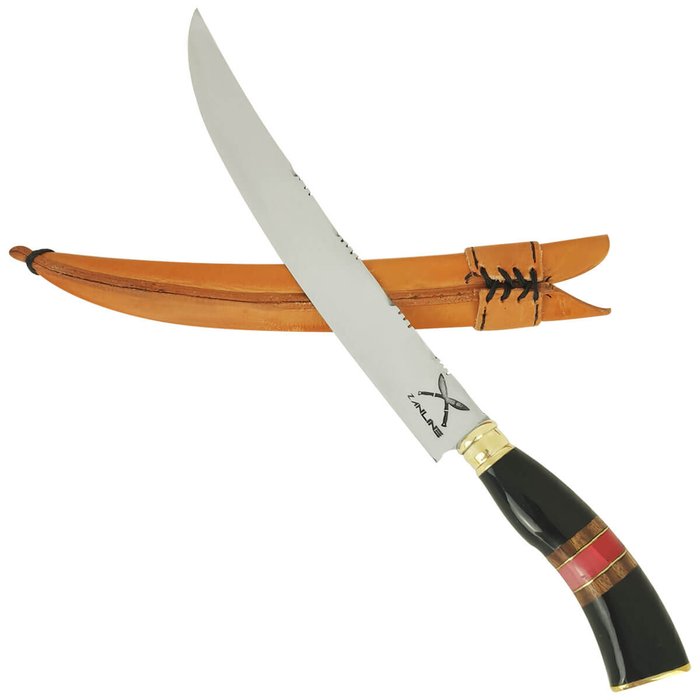 Dimensões da faca: 39cm (C) x 2,5cm (L) x 5cm (A);