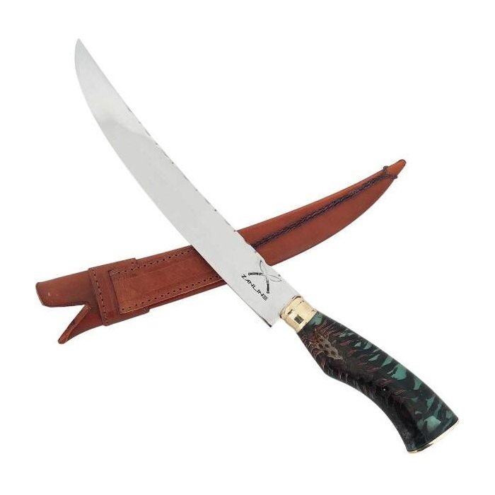 Faca Estilo Chef Nusret Gökçe Salt Bae Carne Artesanal 10' Cabo Híbrido Resina e Pinha Aço Inox 420c