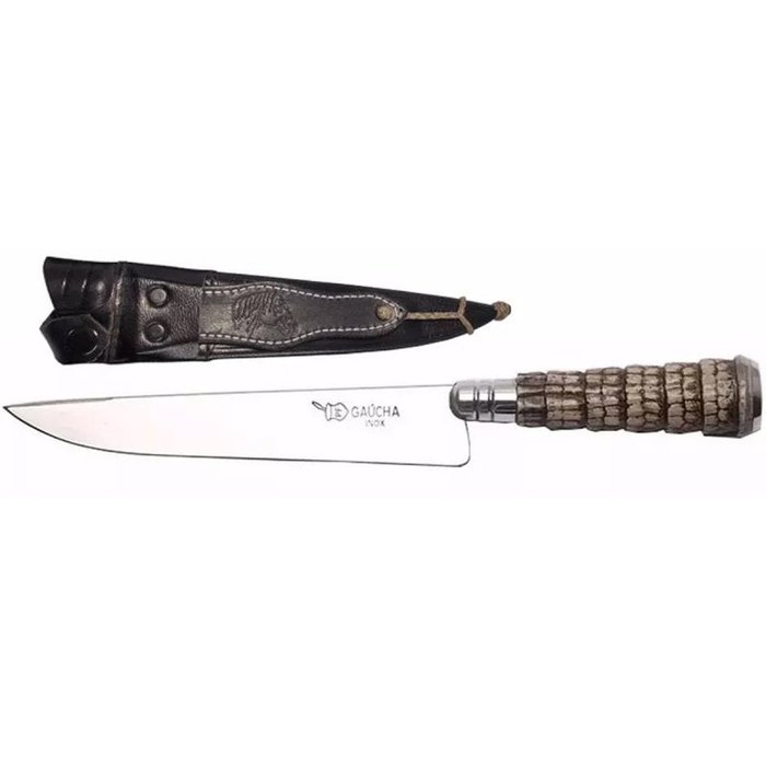 Faca Gaucha Churrasco 8" Cabo Rabo Tatu Bainha Preta Couro