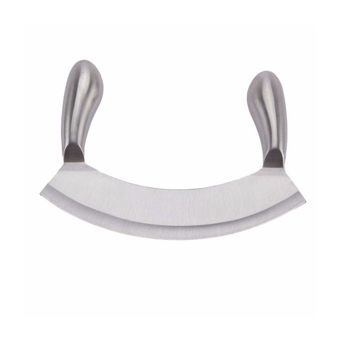 Faca Meia Lua De Temperos Mezzaluna - Aço Inox Dois Cabos