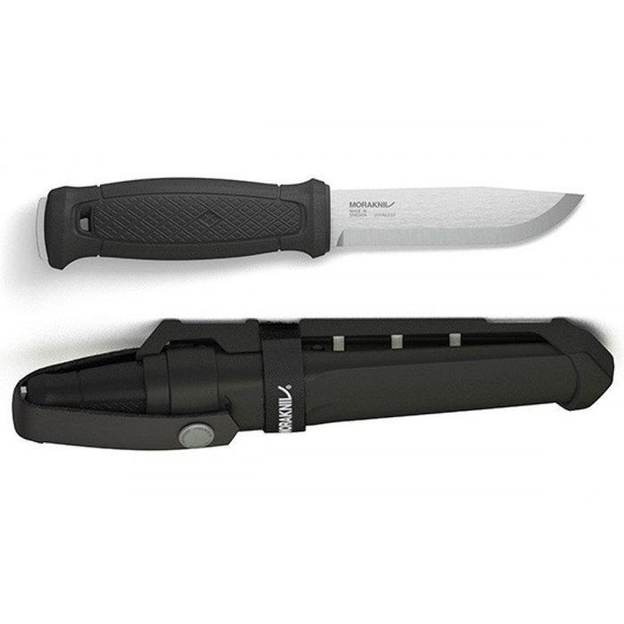 Faca full tang para bushcraft Mora Garberg. Esta é a faca mais robusta fabricada pela Mora. Lamina no aço inox Sandvik 14C28N com acabamento escovado. Cabo com polímero texturizado proporcionando uma ótima aderência. Com furo para corda. Acompanha bainha multi montagem que pode ser utilizada no cinto ou facilmente fixada em coletes e mochilas com o padrão MOLLE. Fabricado na Suécia.