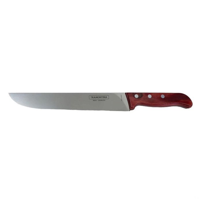 Faca Para Cozinha Tramontina em Inox 8 e Cabo Vermelho Polywood- Cabo de madeira tratada, resistente a impactos, altas temperaturas e a máquina de lavar.