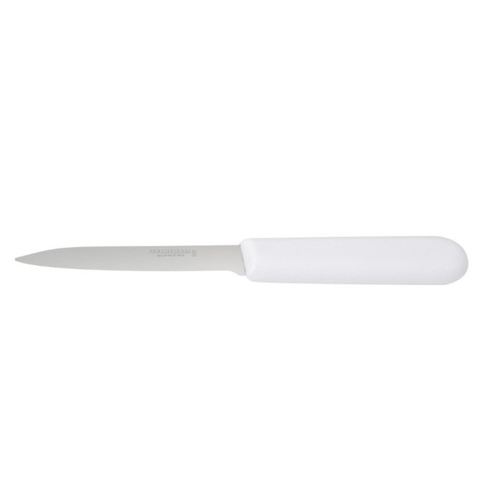 A Faca para Legumes e Frutas Profissional Gourmet Mix foi desenvolvida com a lâmina 4” em inox de ótima qualidade e cabo em polipropileno branco. Ideal para descascar e cortar todos os tipos de legumes e frutas devido ao seu tamanho compacto e mais leve, a Faca para Legumes e Frutas Profissional Gourmet Mix possui uma ponta fina adequada para tirar sementes e trabalhar detalhes com maior facilidade e precisão. Muito menor que a tradicional Faca do Chef, além das frutas e vegetais você pode também utilizá-la para trabalhos que exigem maior precisão e cuidado, como limpar camarões ou cortar enfeites para a finalização de um prato.