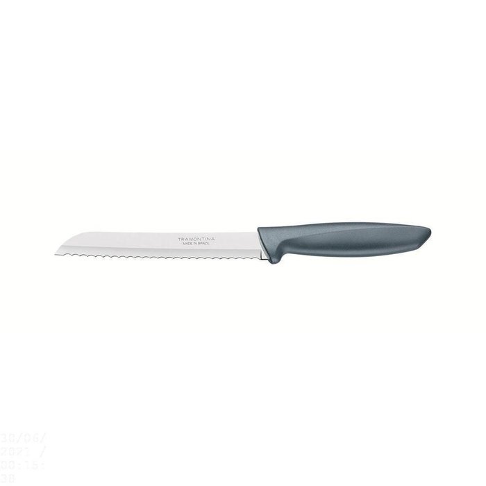 Faca para Pão Tramontina Plenus com Lâmina em Aço Inox e Cabo de Polipropileno Cinza 7"