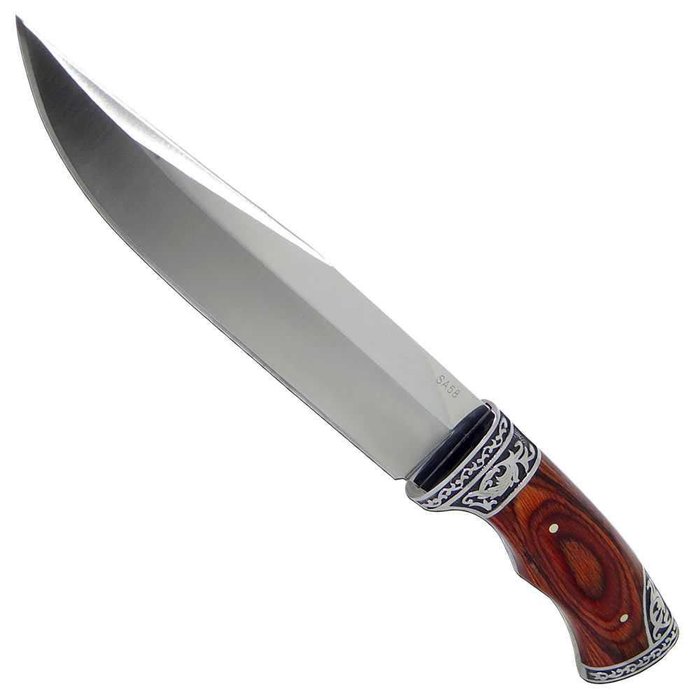 Faca de pesca, caça, ou uso geral.Lâmina de aço inox, cabo com detalhe, com ótima empunhadura e peso ideal para ser manuseada em caça, pesca, camping ou corte de carnes.Contém: - 01 Faca de uso geral.- 01 Bainha com passador de cinto.Tamanho:- Lamina 18,5 cm.- Base 13 cm.- Tamanho total da faca 31,5 cm. cod.MK-06-1024/42..