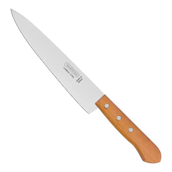 A Faca Peixeira Tramontina de 6" com cabo de madeira é ideal para cortes precisos em carnes, legumes e outros alimentos. Com lâmina em aço inox de alta qualidade e cabo ergonômico em madeira, oferece segurança, conforto e durabilidade para uso doméstico e profissional. Informações sobre o produto: