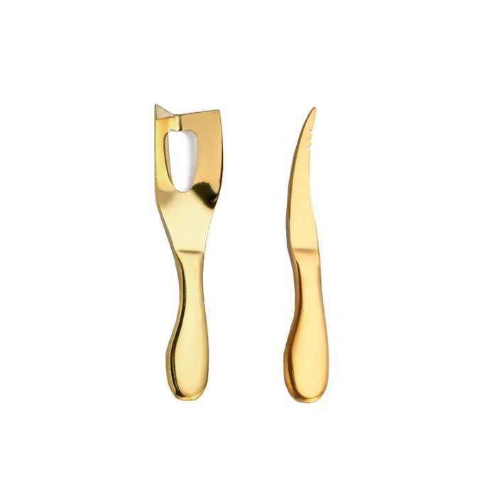 Faca Queijo Camarao Manteiga Jogo Aço Inox Dourado 2un dourado